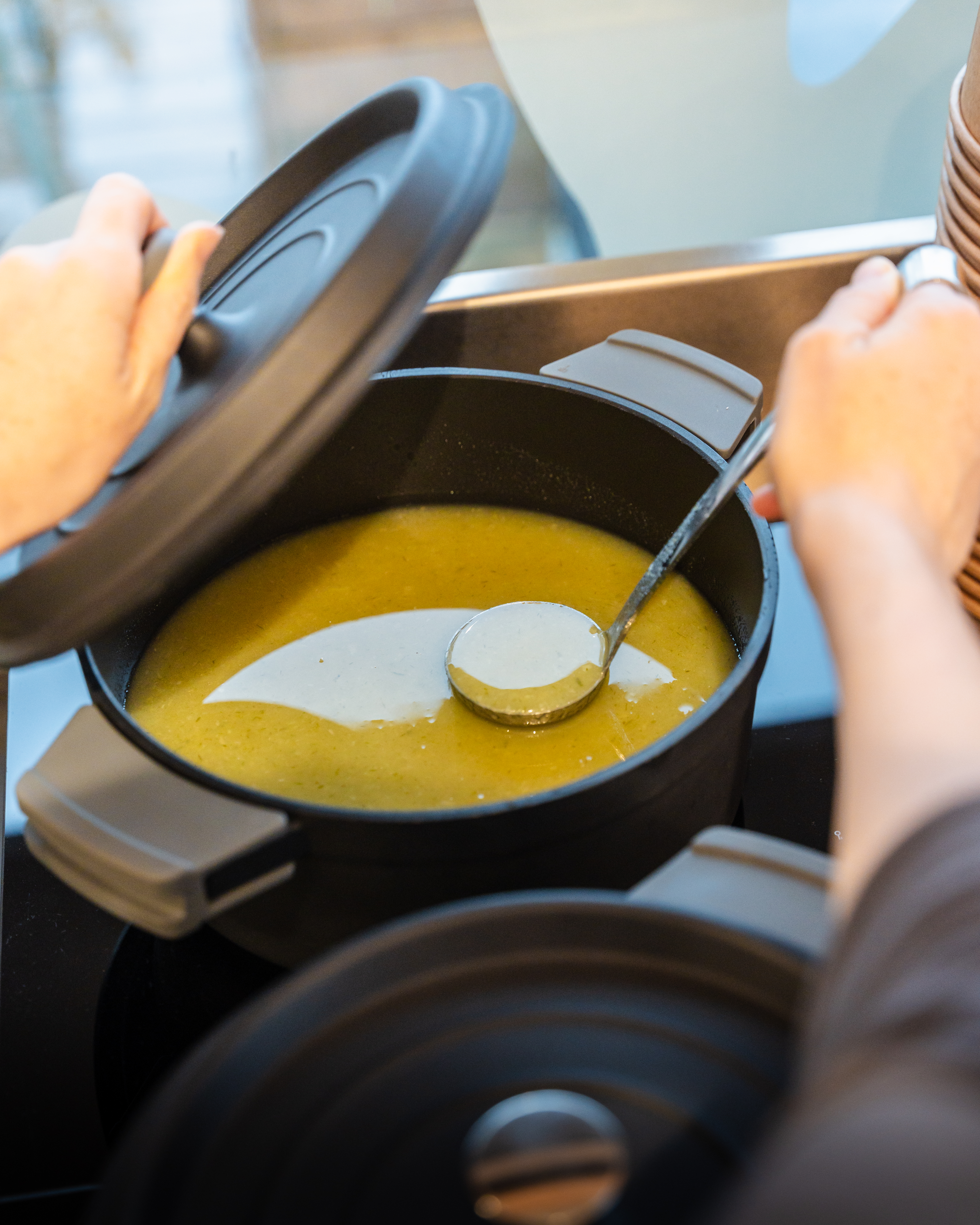 La última fábrica de delicatessen de LUCAS Más que una panadería y pastelería, este nuevo lugar de vida situado en el barrio de Pédebert ofrece crepes, bebidas calientes y zumos frescos, pero también comida rápida con un bar de ensaladas, un bar de pastas, un bar de sopas y una amplia gama de aperitivos salados caseros.